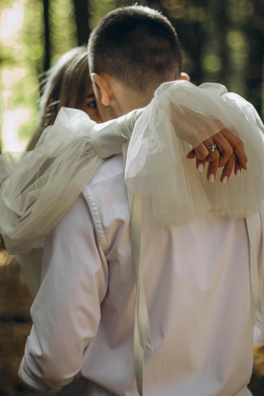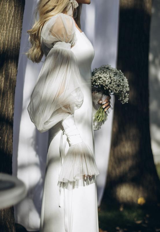 Очень красивое, оригинальное свадебное платье и интересными деталями.