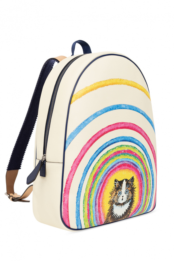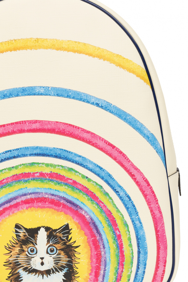 Light yellow backpack from Gucci Kids. Crafted from SUPREME canvas, this design showcases a colourful animal print. It is complete with a zip fastening, a half-round handle, adjustable shoulder straps, dark silver-tone metal hardware and one zip pocket inside.