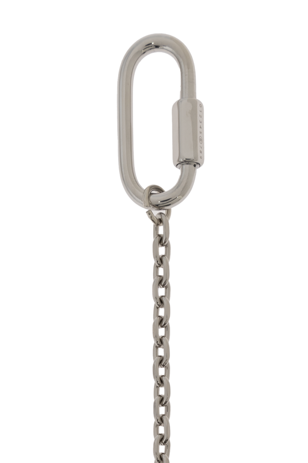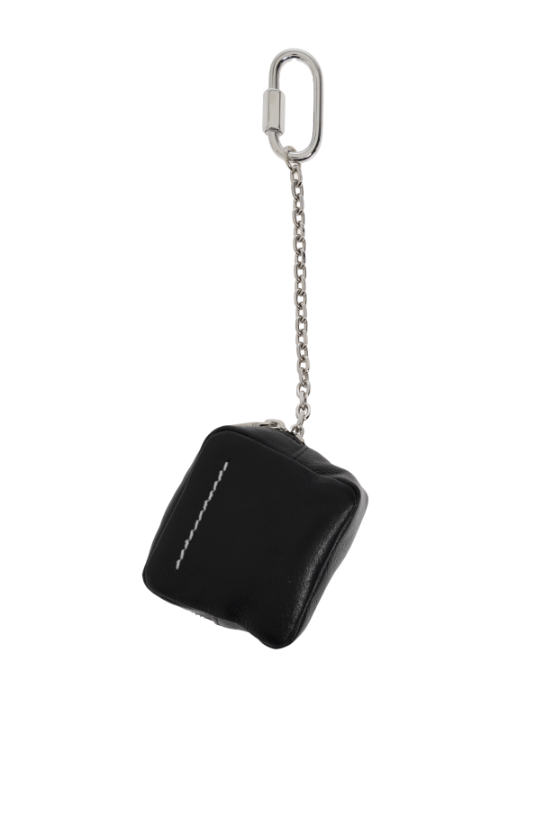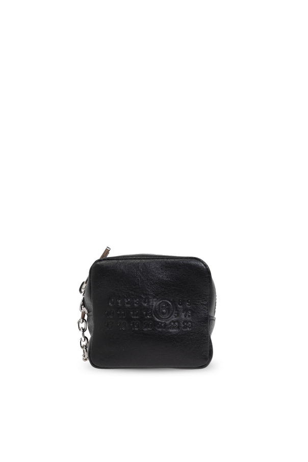 Introducing the Leather Pouch by the esteemed MM6 Maison Margiela, a paragon of avant-garde elegance tailored for the discerning young connoisseur. This black, square-shaped pouch is a testament to meticulous craftsmanship, featuring a metal zipper and an embossed logo that exudes exclusivity. Fashioned from premium calfskin leather, this accessory epitomizes both luxury and durability. It is elegantly affixed to a silver chain with a robust carabiner, ensuring effortless attachment to your bag or keys, making it as functional as it is fashionable. MM6 Maison Margiela\'s collection draws inspiration from subcultures and diverse social groups, offering not just an accessory, but a conceptual fashion statement. Why Choose This Product? Exquisite craftsmanship with embossed logo detailing. Durable calfskin leather for a luxurious touch. Convenient metal zipper closure for secure storage. Versatile attachment options with a silver chain and carabiner. Embodies the avant-garde spirit of MM6 Maison Margiela.