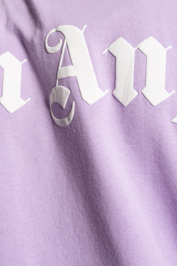 Purple crewneck T-shirt Palm Angels. Crafted from cotton with an oversize, this style showcases a white graphic print with the brand\'s logo.