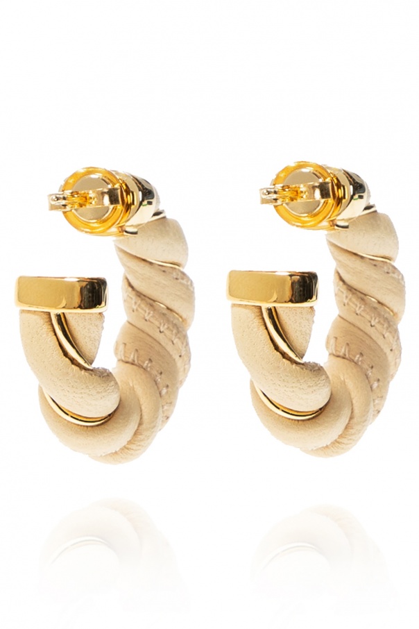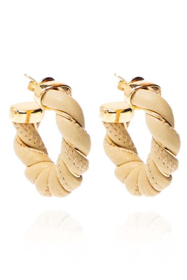 Gold-tone earrings from Bottega Veneta. Made out of genuine silver, this piece of jewellery was embellished with beige leather elements.
