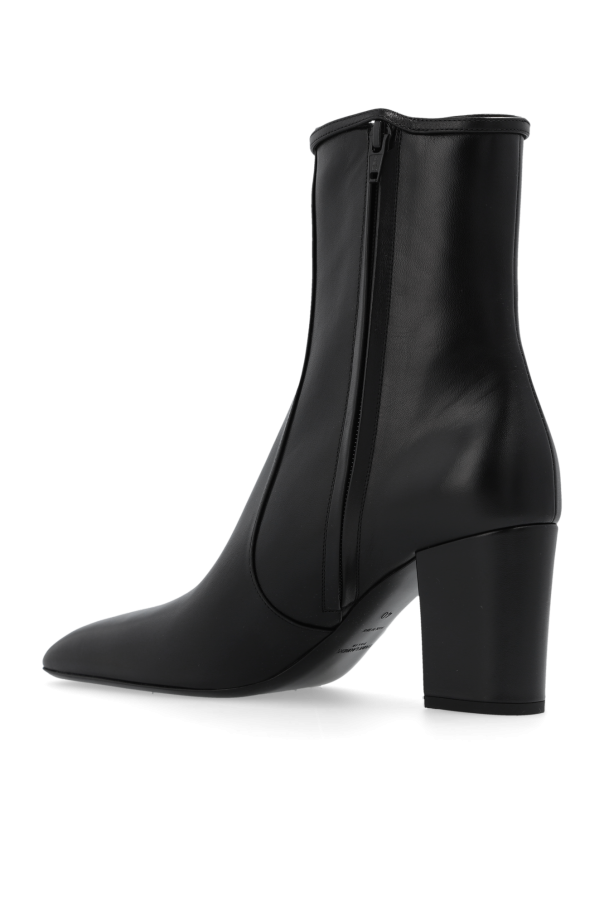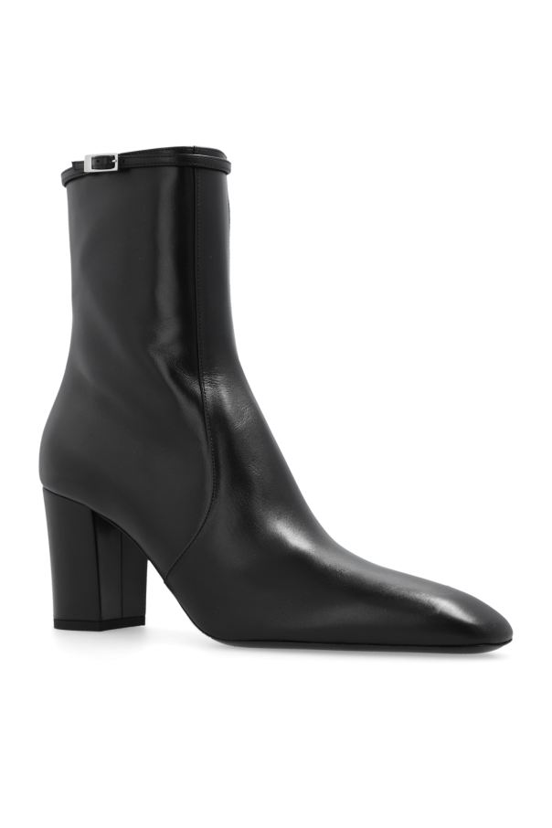 Black ‘Betty’ heeled ankle boots from Saint Laurent. Made from calf leather, this model sits on a black leather sole and features a side zipper, block heel and a thin strap with a silver-tone metal buckle at the upper hem.