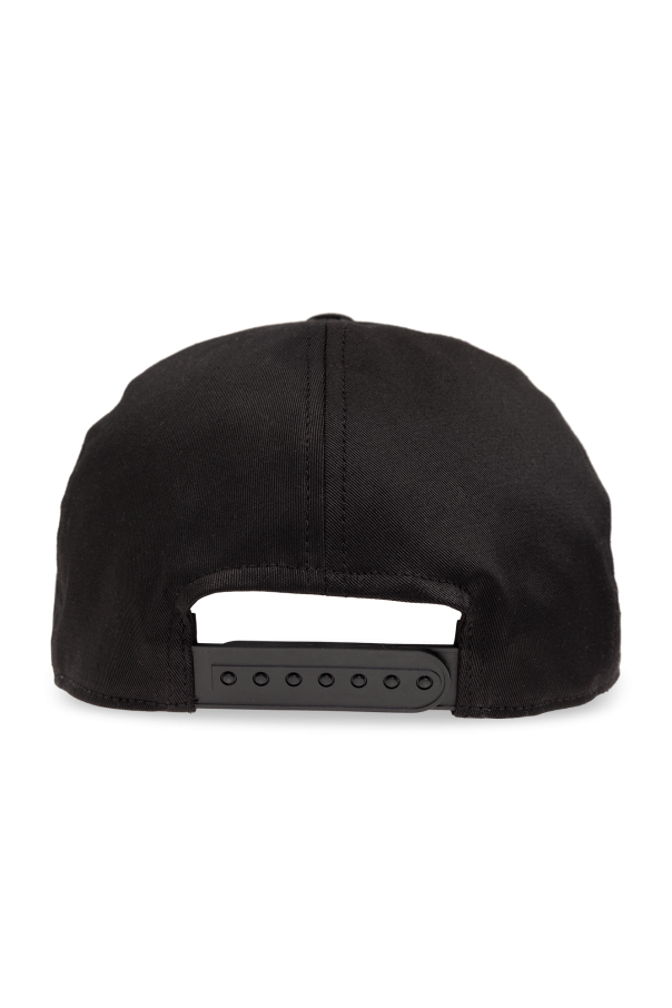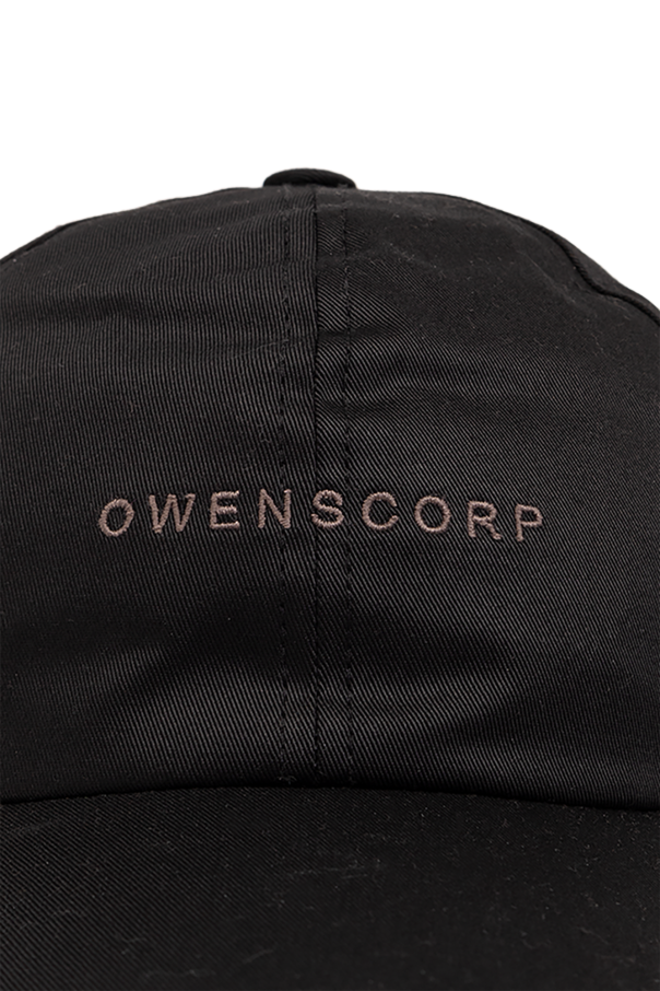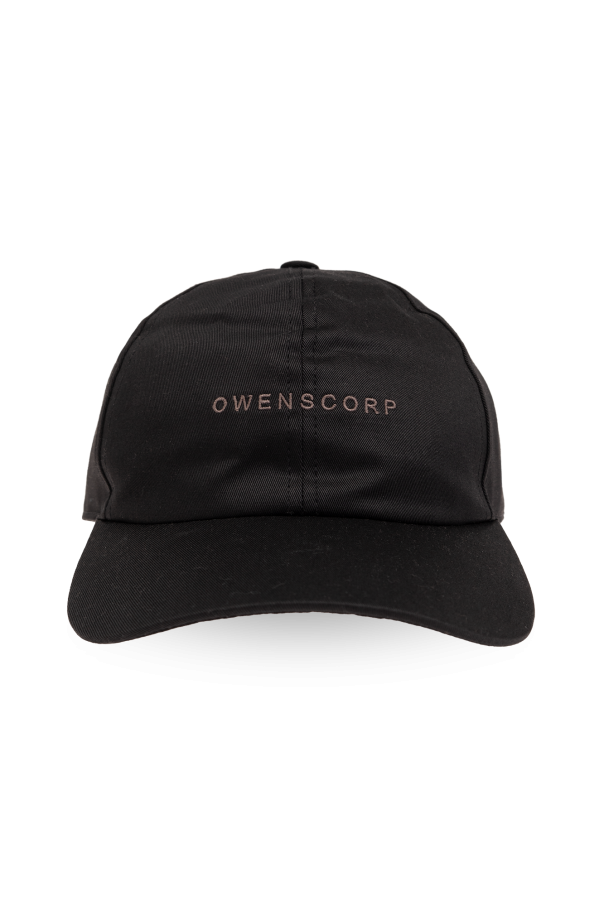 Black baseball cap from Rick Owens. Made of cotton, this item features a grey logo embroidery and a snap fastening at the back.