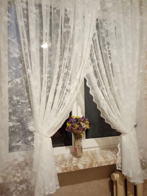 Розмір 3*1,7 м/850 грн, 5*1,7 м/950 грнТакож ця тюль красиво дивиться з шторами під мрамор. Ціна за 1 м/160 грн + комісія шафи, є дорожчої також якості 250 грн/м.
