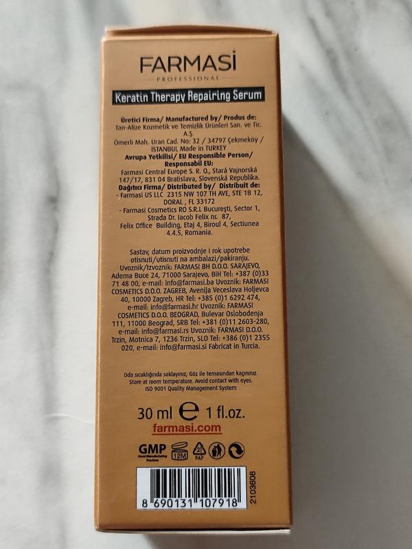 Косметическое средство от Farmasi станет Вам хорошим средством, для восстановления повреждённых волос и реанимации кончиков, что секутся. Сыворотка содержит кератин, который разглаживает пушистые волосы, заполняет микротрещины и надёжно защищает от воздействия агрессивных факторов окружающей среды.Использование: Нанести на кончики волос, не требует смывания.