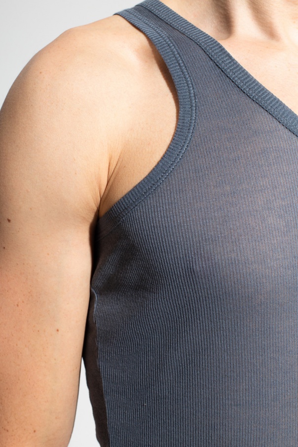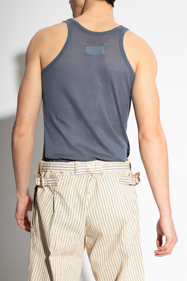 Grey and blue top from MM6 Maison Margiela. Crafted from a cotton and silk blend fabric in a ribbed finish, this item flaunts a semi-sheer silhouette.