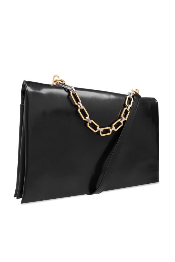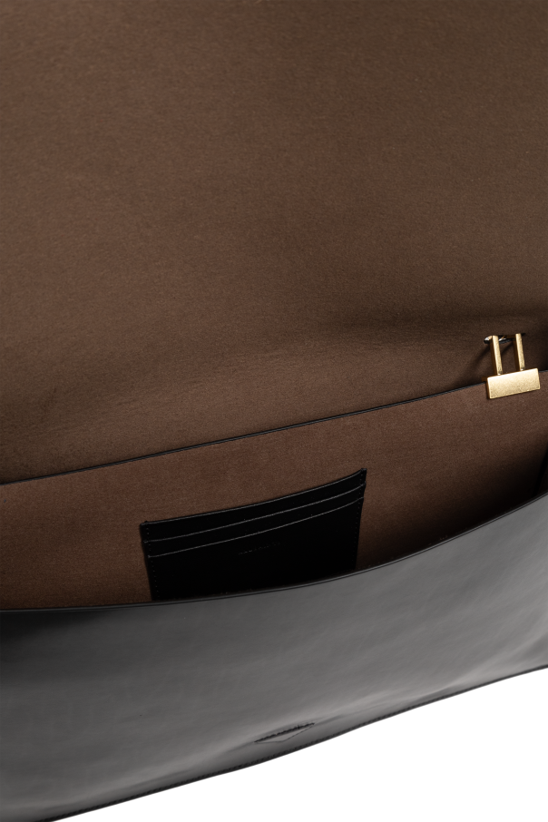 Introducing the Luca Shoulder Bag by AllSaints, a paragon of sophistication and minimalist design. Crafted with the finest leather, this black shoulder bag boasts a sleek, rectangular silhouette with softly rounded edges. The smooth texture of the bag is complemented by an exquisite gold chain strap, adding a touch of elegance and a distinct design element that sets the Luca apart. The rear of the bag presents a smooth facade, featuring a discreet external pocket for essentials that demand easy access. Inside, the Luca reveals a contrasting dark brown lining, housing two compartments and three slip pockets, meticulously designed to organize your belongings. The strap\'s precise stitching and gold hardware harmonize with the chain, embodying luxury in every detail. A notable absence of exterior logos or branding allows the Luca Shoulder Bag\'s design and quality to speak for themselves, aligning with AllSaints\' ethos of understated elegance. Why Purchase the Luca Shoulder Bag? Exquisite Material: Crafted from 100% premium leather, ensuring durability and a luxurious feel. Elegant Design: The gold chain strap and minimalist aesthetic afford a timeless elegance. Functional Elegance: Features two compartments and three slip pockets, blending style with practicality. Understated Branding: The design prioritizes sophistication and quality, free from overt logos.
