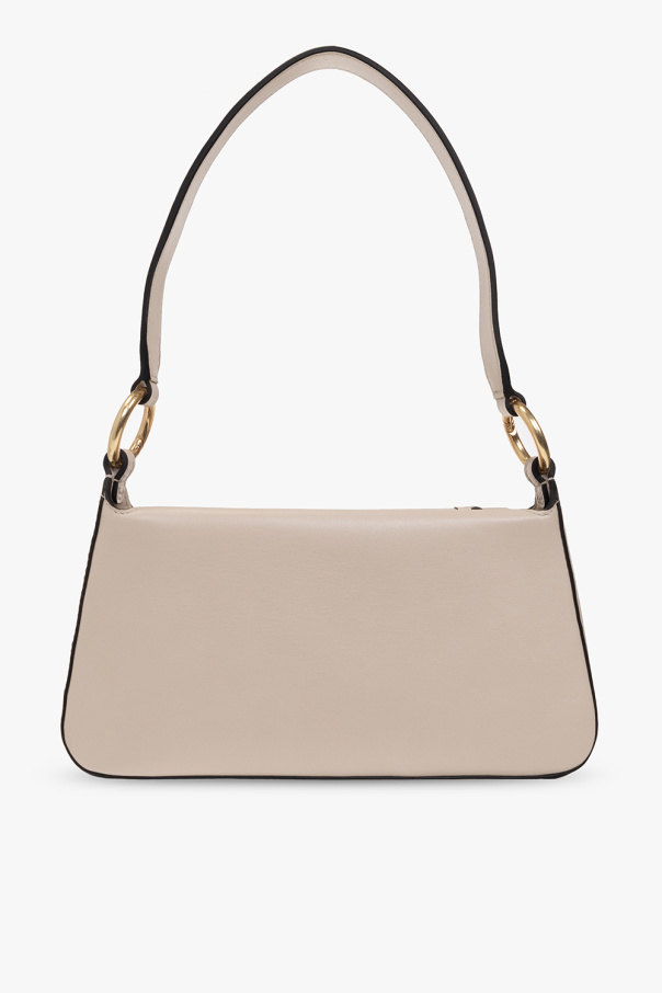 Cream ‘Tilda Baguette’ shoulder bag from See By Chloé. Crafted from leather, this design fastens with a zipper and showcases topstitched details with fringes and logo pendants on the front, a short and detachable strap, gold-tone metal hardware and one internal compartment with a card slot.