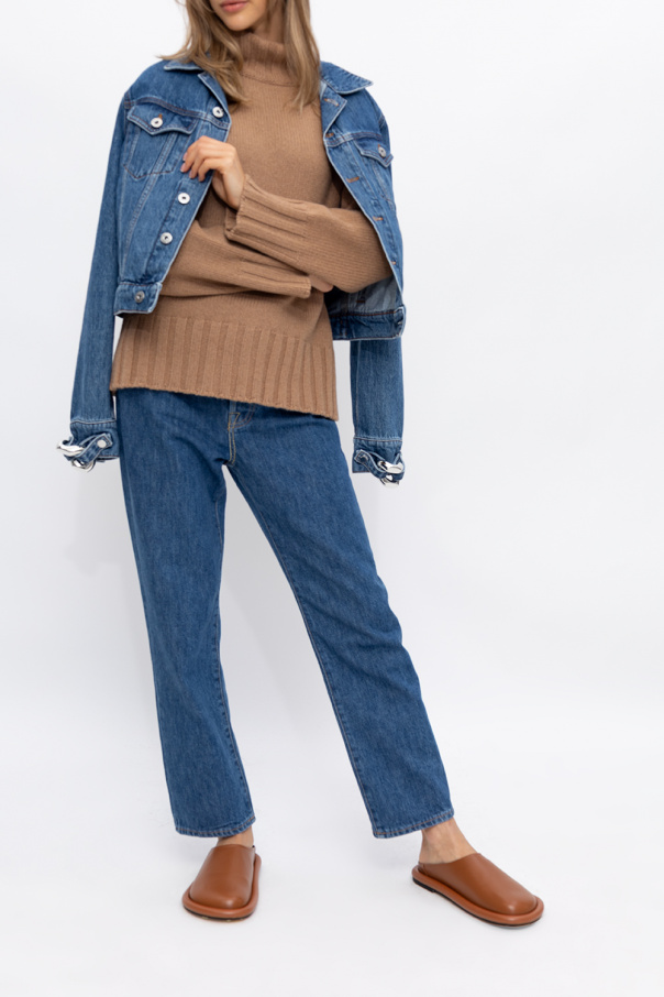 Brown slides from J.W. Anderson. Crafted from leather, this model sits on a black rubber sole.