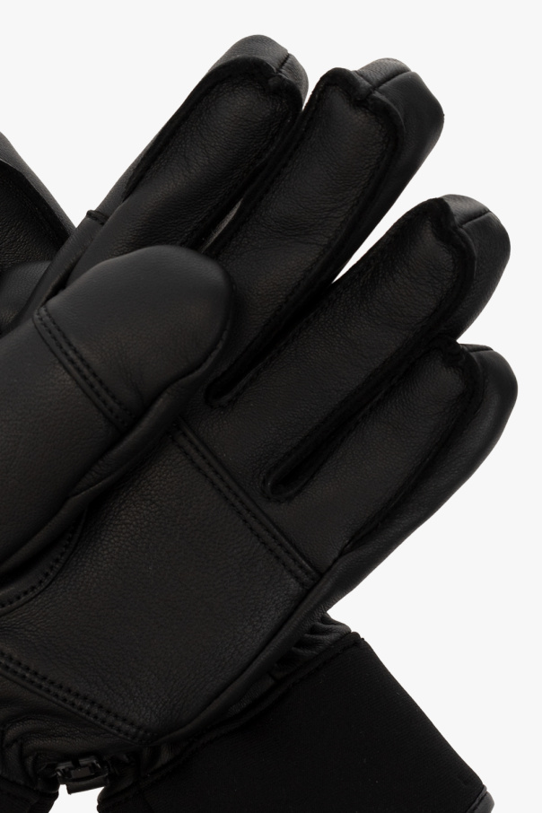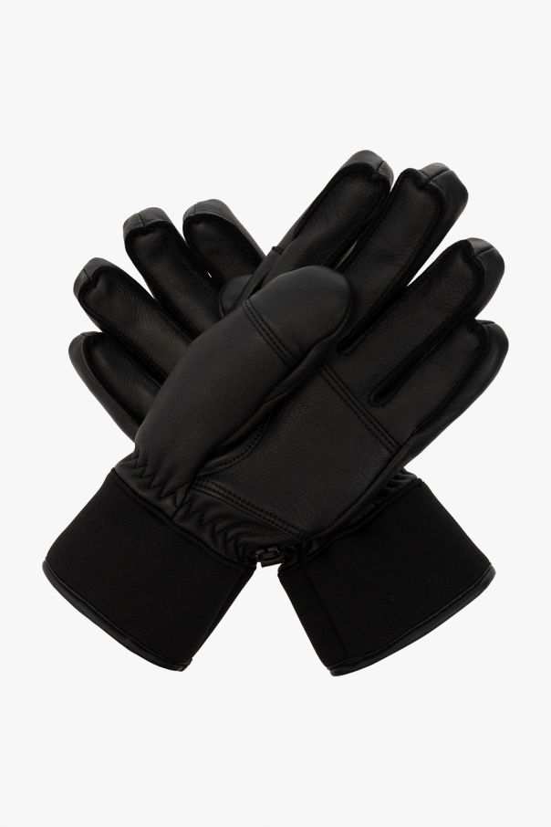 Black ski gloves from Perfect Moment. Made of sheep leather with waterproof, thermal fleece lining, this pair features elastic adjusters and graphic embroidery with the brand\'s logo and lettering.