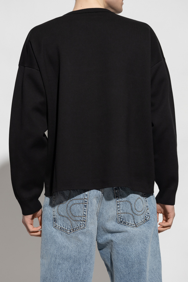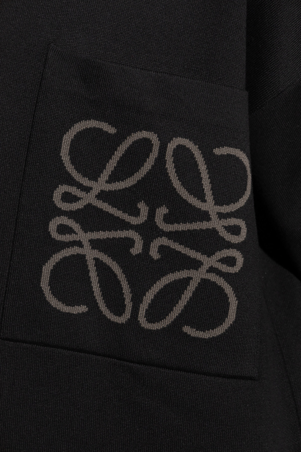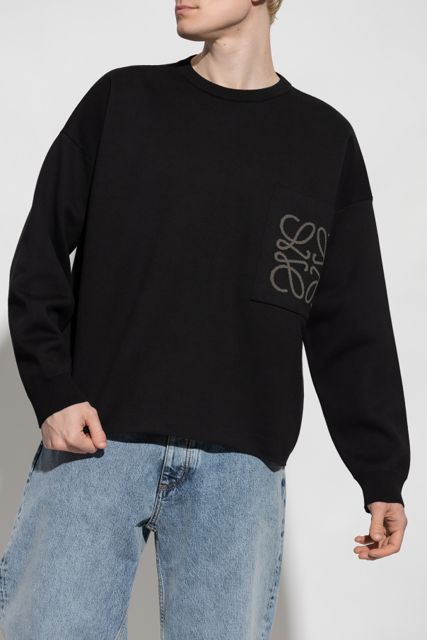 Black loose-fitting sweater from Loewe. This long sleeve design features a front pocket with a grey Anagram logo embroidery as well as ribbed trims at the crew neck, hem and cuffs.