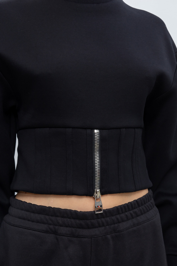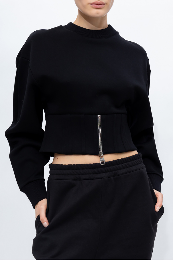 Black crewneck sweatshirt from Alexander McQueen. Crafted from cotton jersey, this style features a distinctive zipper and rib-knit trims on the collar and long sleeves.
