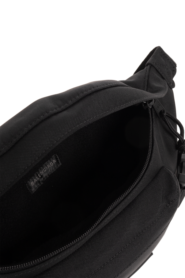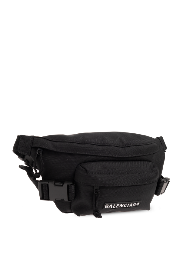 Black belt bag from Balenciaga, the ‘Skiwear’ collection. Fastened with a zip, this design features a white logo pattern as well as a zipped front pocket and strap.