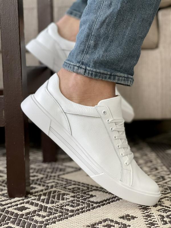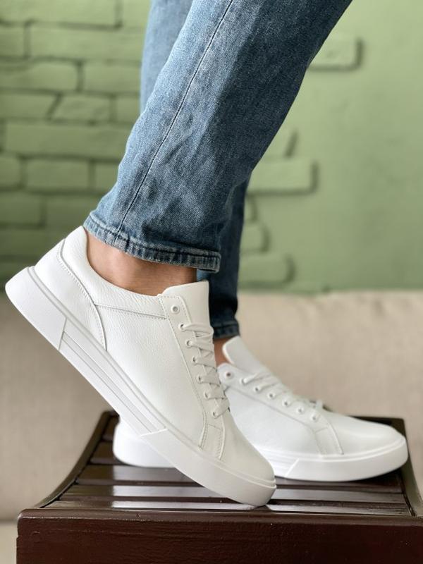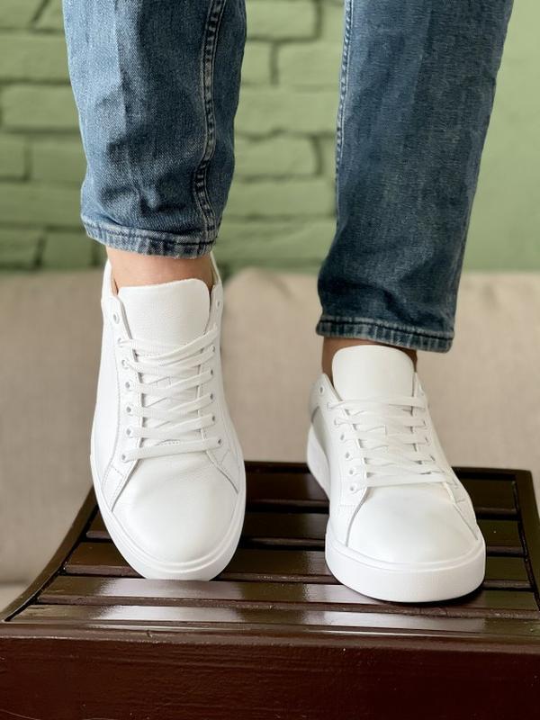 Стильные кеды мужские кожаные белые деми,демисезонные,осенние,весенние (осень,весна 2022-2023)