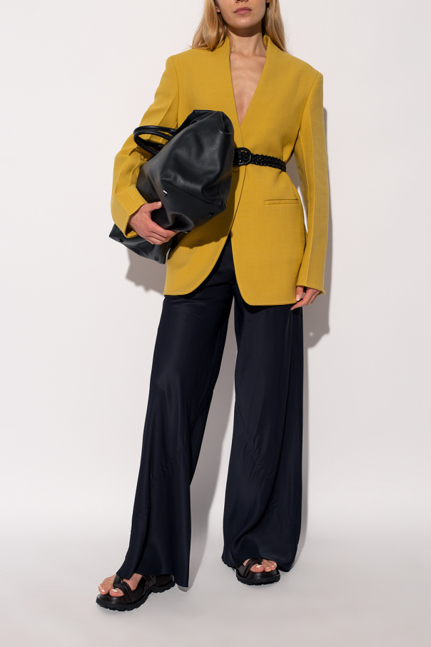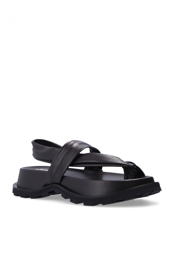 Dark brown and black platform sandals from JIL SANDER. Crafted from leather, this model sits on a black rubber sole.