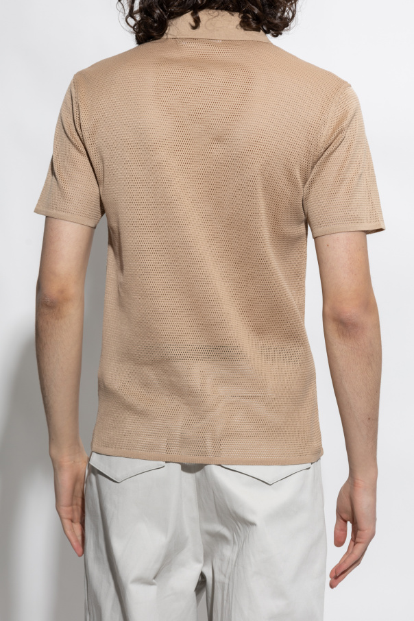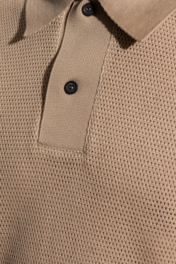 Beige openwork polo shirt from FERRAGAMO. Made of cotton, this style features a button placket and ribbing on the short sleeves and hem.