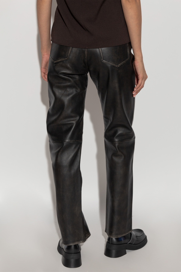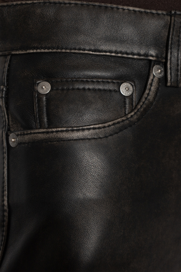 Introducing the Salynn Leather Pants from the esteemed Samsøe Samsøe collection—an epitome of sophisticated elegance. Crafted from the finest lamb leather, these pants exude a subtle sheen, augmented by delicate distressing for a refined, vintage allure. The Salynn pants feature a classic, straight-leg silhouette with a mid-rise waist, gracefully ending at the ankle. The meticulous five-pocket design includes two front pockets, a small coin pocket, and two back pockets, each reinforced with metal rivets for enhanced durability. The deep black hue, accentuated by gentle wear marks, adds depth and character to the leather, while the tonal stitching ensures a seamless, polished look. The pants fasten with a button and a zipper, providing both functionality and style. Why Choose This Product? Exquisite Material: Made from 100% lamb leather, offering premium quality and a luxurious feel. Timeless Design: Classic straight-leg cut with a mid-rise waist, suitable for various occasions. Attention to Detail: Five-pocket design with reinforced rivets and tonal stitching for a cohesive look. Vintage Appeal: Subtle distressing adds a unique, sophisticated touch. Renowned Designer: From the internationally acclaimed Samsøe Samsøe, known for their minimalist and refined aesthetic.