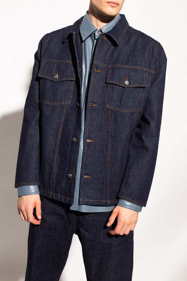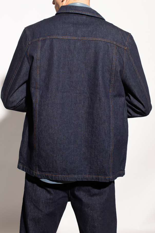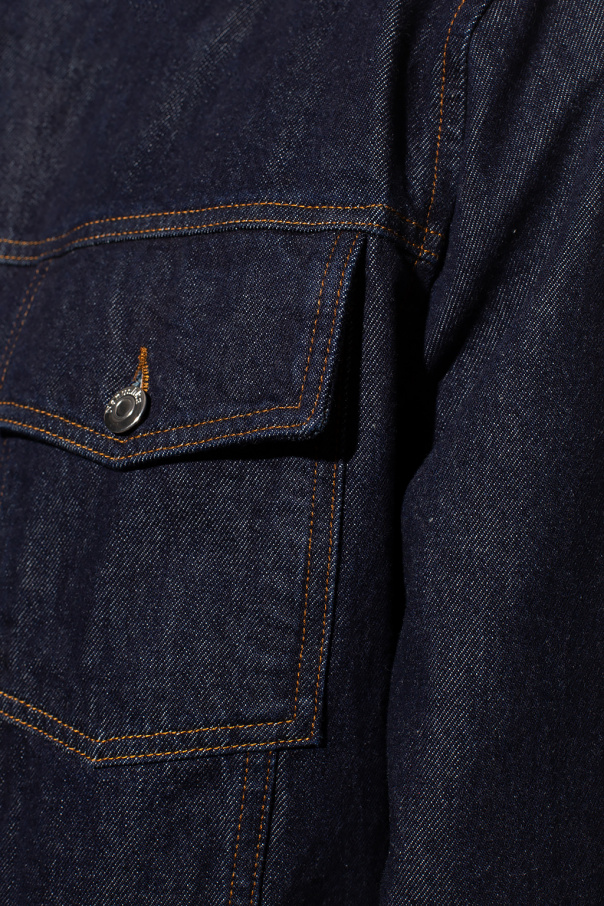 Dark navy blue denim jacket from Nanushka. Crafted from organic cotton, this style features button fastenings, exposed stitching in brown, two slip pockets and two button pockets.