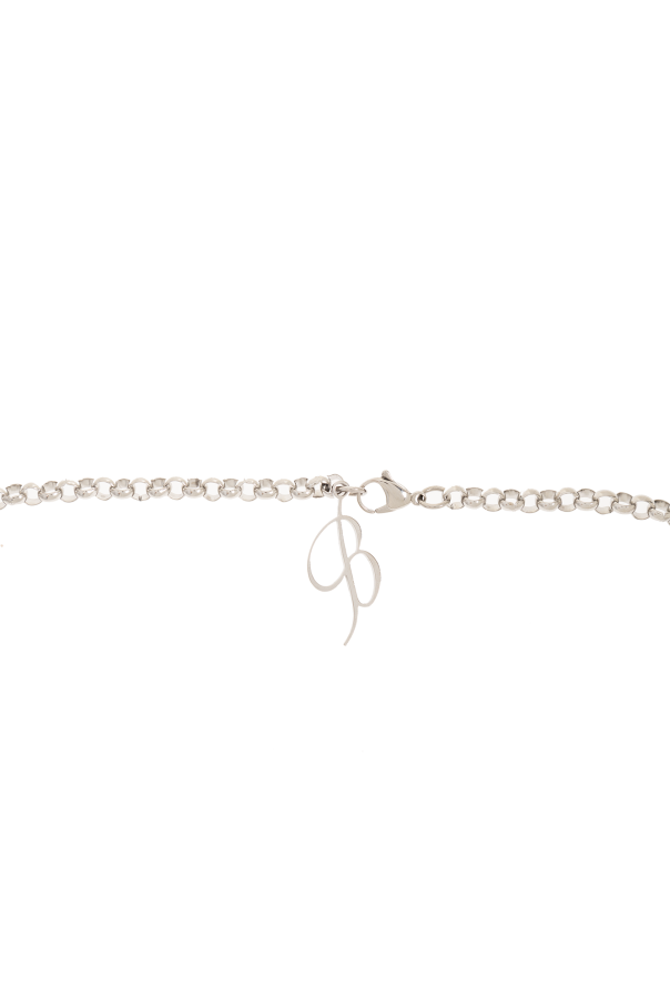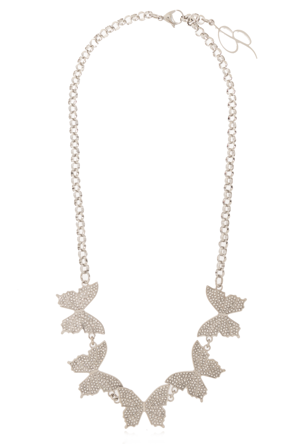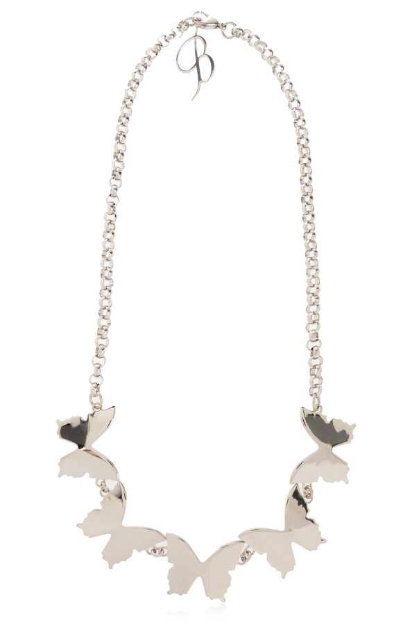 Silver-tone necklace from Blumarine. Made of brass, this design features a butterfly motifs. logo and a lobster clasp closure.