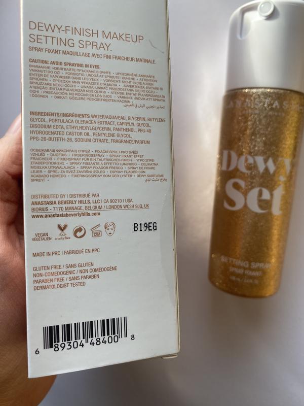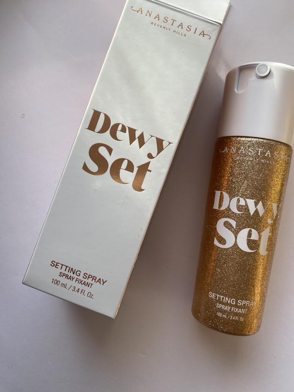 Остатки в объеме где-то 90 мл из 100Anastasia Beverly Hills Dewy Set Setting Spray - это ароматный кокосово-ванильный закрепящий спрей, который добавит лицу влажный финиш.