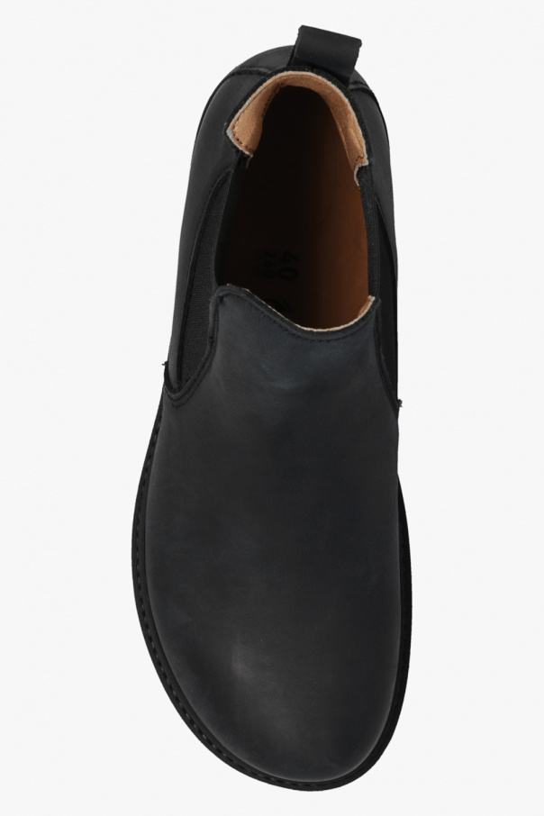 Black ‘Stalon II’ Chelsea boots from Birkenstock. Crafted from oiled nubuck leather, this model sits on a black rubber sole and features elastic panels and an embossed logo on the side.
