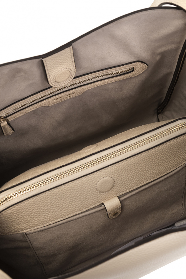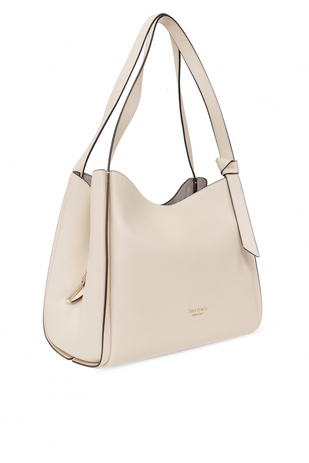 Cream ‘Knot Large’ shoulder bag from Kate Spade. Crafted from leather, this model is decorated with a metal logo and has two compartments with magnetic closure, one zipped compartment, two half-round shoulder straps and gold-tone metal hardware.