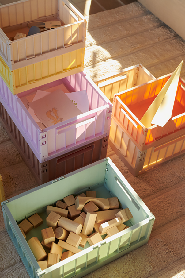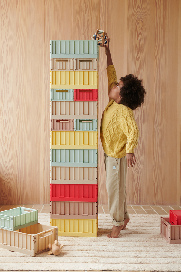 Introducing the Weston Medium - a sophisticated and practical storage solution designed with the discerning young organizer in mind. This charming pink foldable container offers a delightful blend of form and function, making it an essential accessory for any child\'s space. Expertly crafted by Liewood, this rectangular container is constructed from high-quality plastic, including a commendable proportion of recycled materials. It features elegantly pronounced vertical ribbing on its sides, adding a touch of texture and visual interest. The Weston Medium is not only visually appealing but also highly functional. Its open-top design and convenient side handles ensure effortless portability, while its foldable nature allows it to collapse flat for efficient storage when not in use. Why Choose This Product? Stylish and Versatile: Perfectly complements a variety of children\'s room decors. Sustainable Materials: Made from recycled plastic for an eco-conscious choice. Space-Saving Design: Easily folds flat, optimizing storage space. Portable and Practical: Side handles for easy carrying.