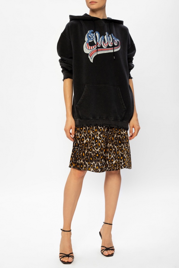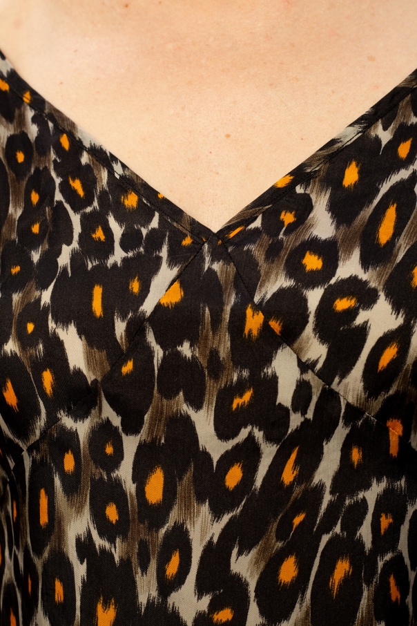 Multicoloured slip dress from R13. Arrayed in leopard motif, this sleeveless design has V-neckline and distinctive self-tie closures.