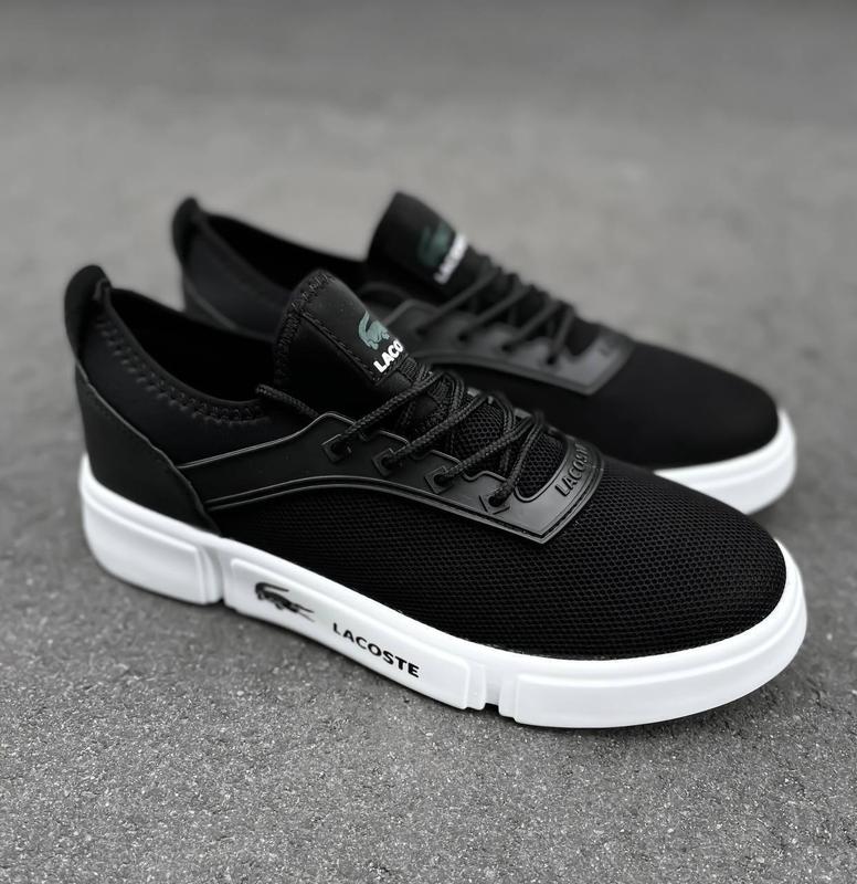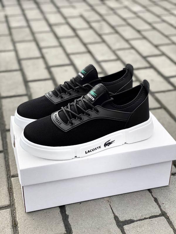 Чоловічі чорні кеди кросівки Lacoste, кеді кросівки. Топ якість! Відмінні варіант для повсякденного носіння. На нозі сидять дуже комфортно. Встигніть замовити потрібний Вам розмір! КОД: 04_1408 При замовленні від 2-х пар ЗНИЖКА! Матеріал: сітка, текстиль Колір: чорний з білою підошвою Підошва: пінка Виробник: В'єтнам Розмір: 40-44 40р - 26 см 41р - 26,5 см 42р - 27 см 43р - 28 см 44р - 28,5 см