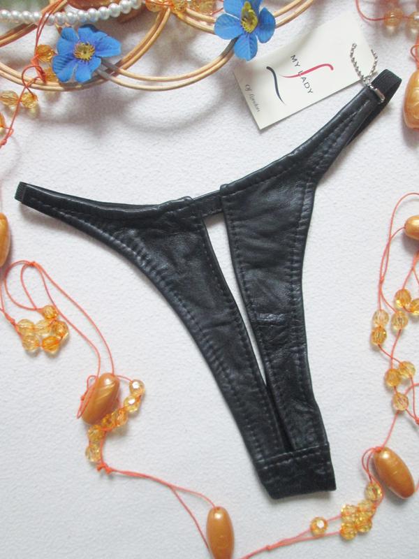 Бомбезные кожаные эротичнские трусики стринги с разрезом My Lady 🌺🍒🌺
