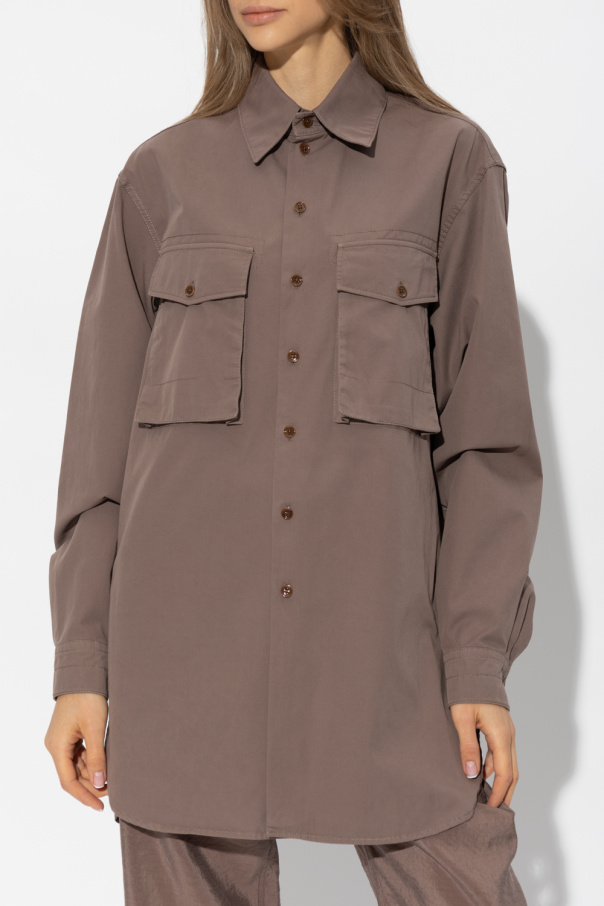 Brown loose-fitting shirt from Lemaire. Fastened with buttons, this garment features two buttoned flap pockets, side vents and long sleeves with buttoned cuffs.