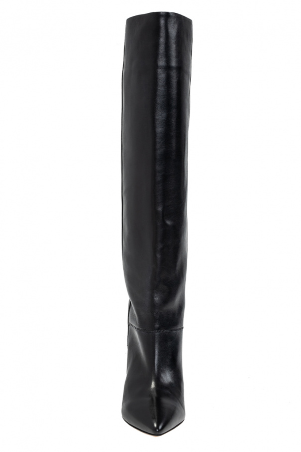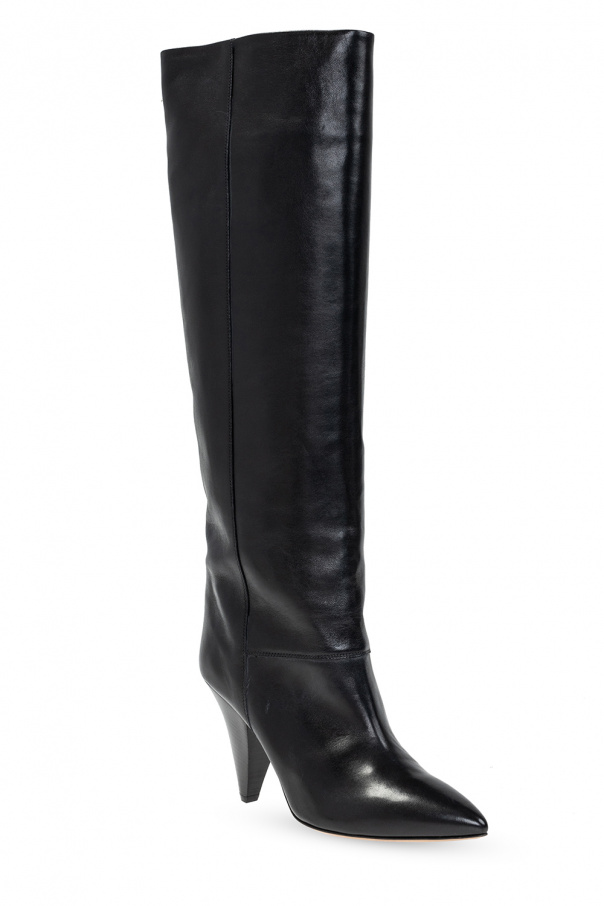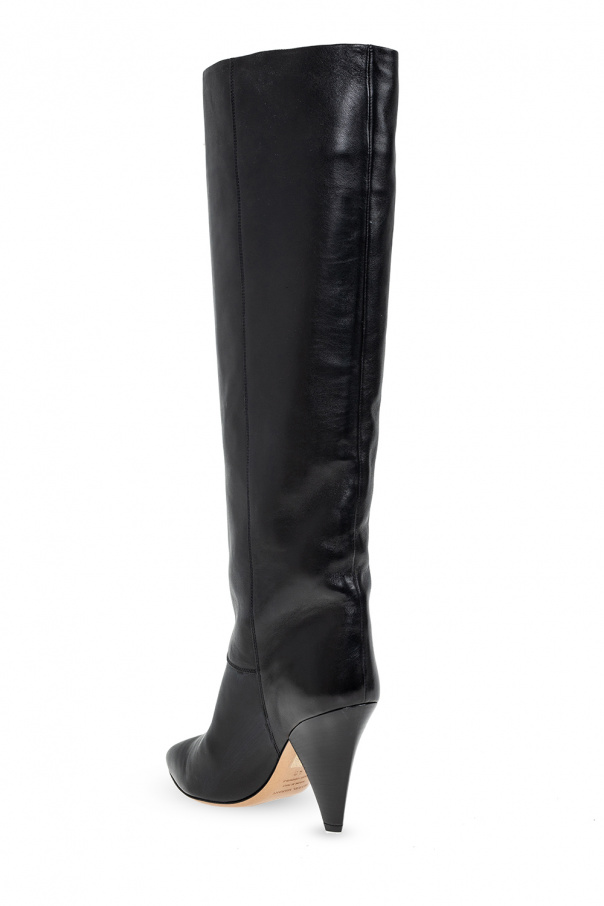 Black ‘Lybill’ heeled boots from Isabel Marant. Crafted from sheep leather, this pair features a pointed toe and leather sole in beige and black.