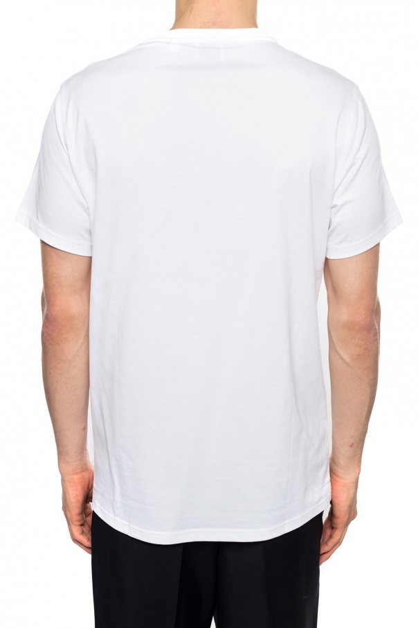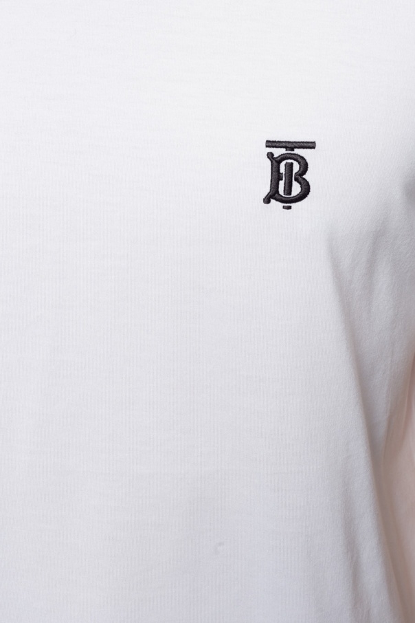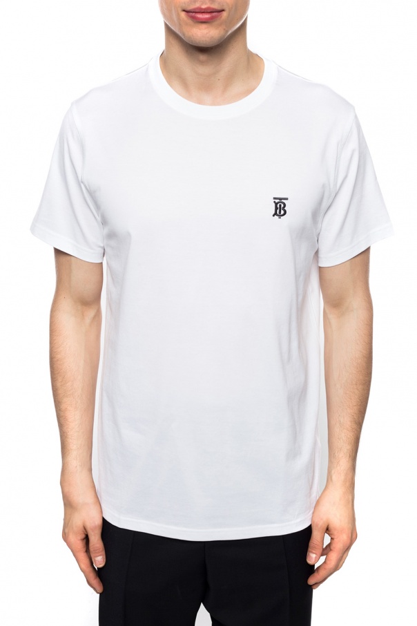 White crewneck T-shirt from Burberry. Made of cotton. Embellished with embroidered black logo.
