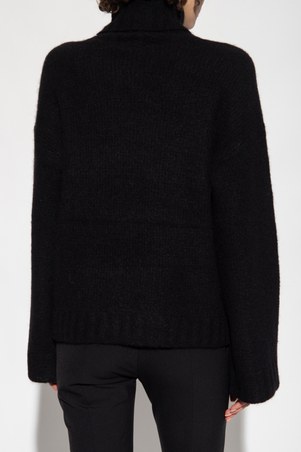 Black ‘AlphaGZ’ loose-fitting turtleneck sweater from Gestuz. Crafted from a blend of alpaca, sheep wool and recycled materials, this garment has long wide sleeves and ribbed trims at the hem and cuffs.