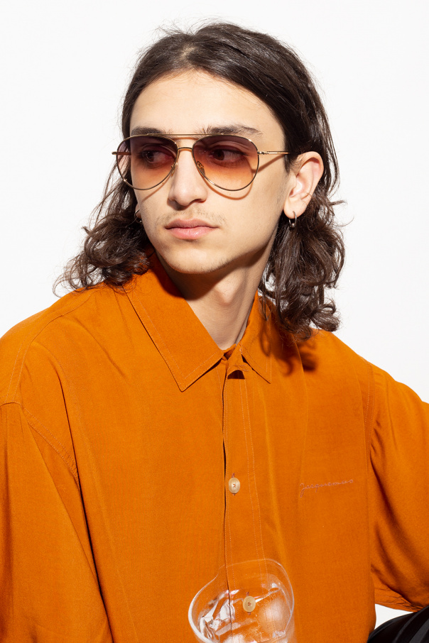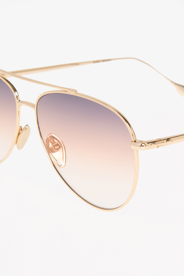 Gold-tone sunglasses from Isabel Marant. This aviator pair features an engraved logo as well as navy and pink gradient lenses with 100% UV protection. Comes with a case.