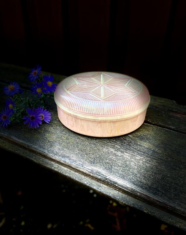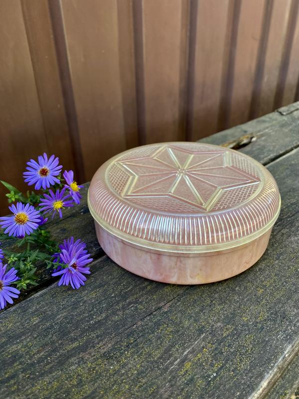 В такой округлой коробочке с 1960-х годов удобно хранить не только украшения, но и пуговицы, например, шпильки или другие безделушки бытового использования! Можно сложить конфеты или прессованный сахар и эффектно подать к чаю! Да, что бы ни было! 🫖🥯