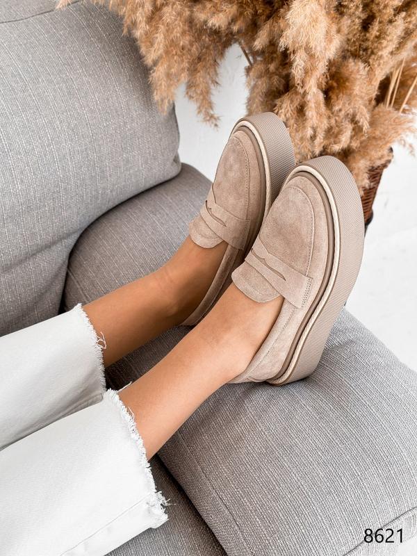 Туфли лоферы женские Tassi беж, натуральная замшаКод: 8621