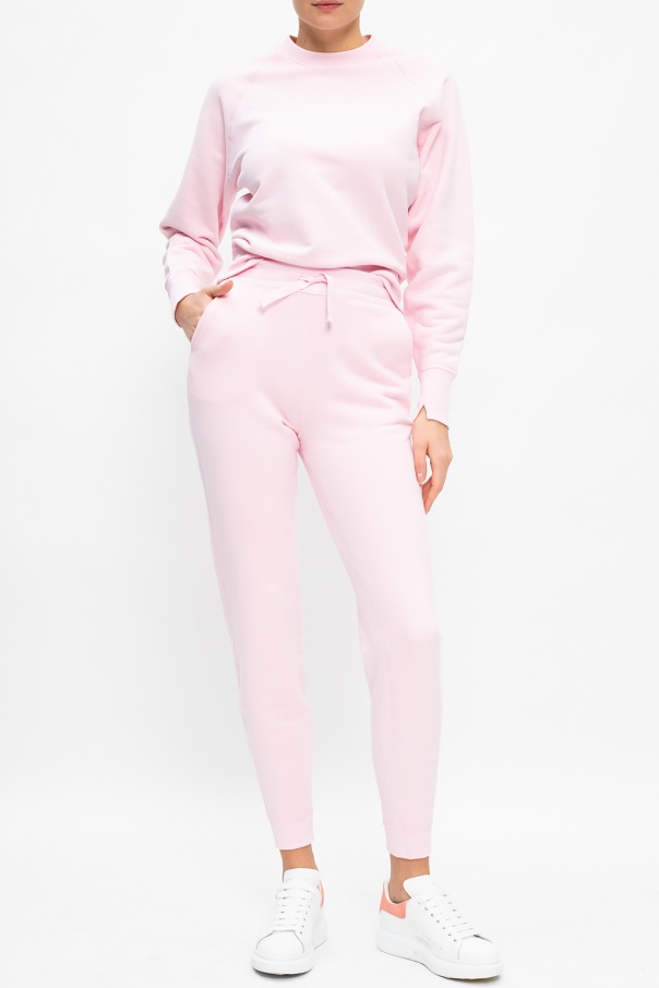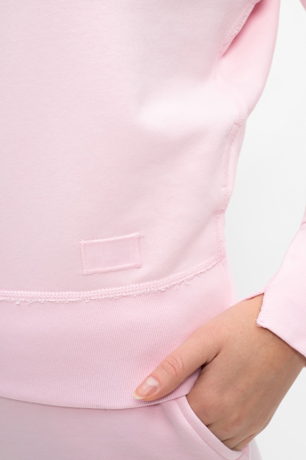Pink crewneck sweatshirt from Rag & Bone. Sporting a logo patch for the brand recognition, this cotton-crafted style is complete with rib-knit trims at the collar, bottom hem and cuffs and raw edges.