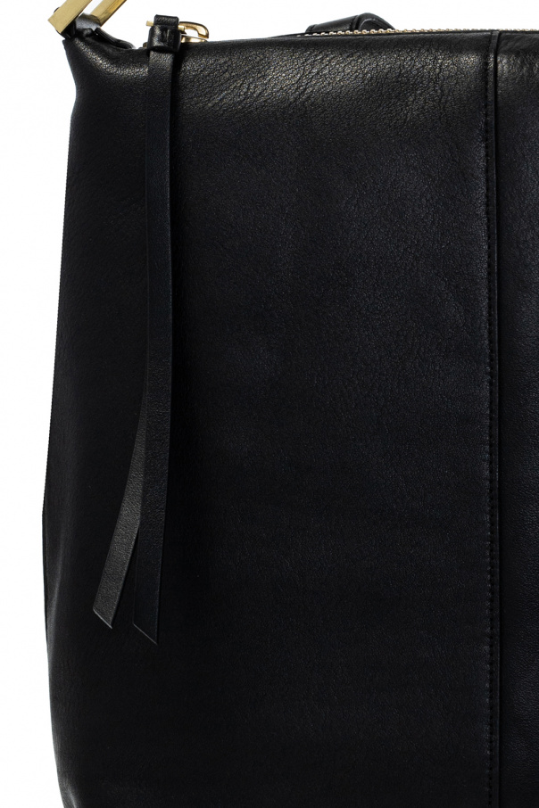 Black ‘Lawrence’ backpack from AllSaints. Crafted from leather, this model features a zip fastening, zip pocket on the side, slip pocket at the back, adjustable straps, gold-tone metal hardware and one internal compartment with one zip pocket and one slip pocket. Can also be worn as a shoulder bag.