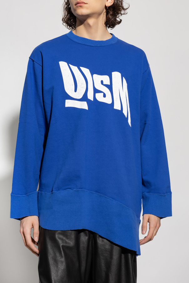 Blue sweatshirt from Undercover. Crafted from cotton jersey with an asymmetrical silhouette, this style features a white cracked-effect print on the front, long sleeves and ribbed trims on the edges.