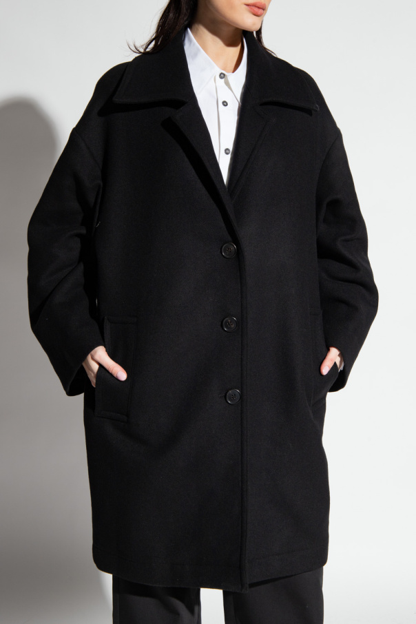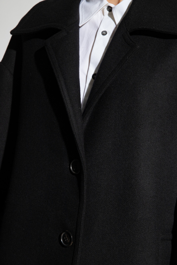 Black coat from Palm Angels. Cut with a relaxed fit, this style features notch lapels, button fastenings, two frontal pockets and long sleeves.