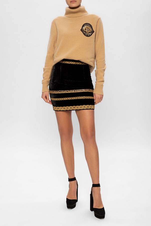 Black ‘Jinn’ pumps from Jimmy Choo. Crafted from suede, this pair is set on a beige leather sole and showcases buckle strap around the ankle and metal logo plaque on the heel.