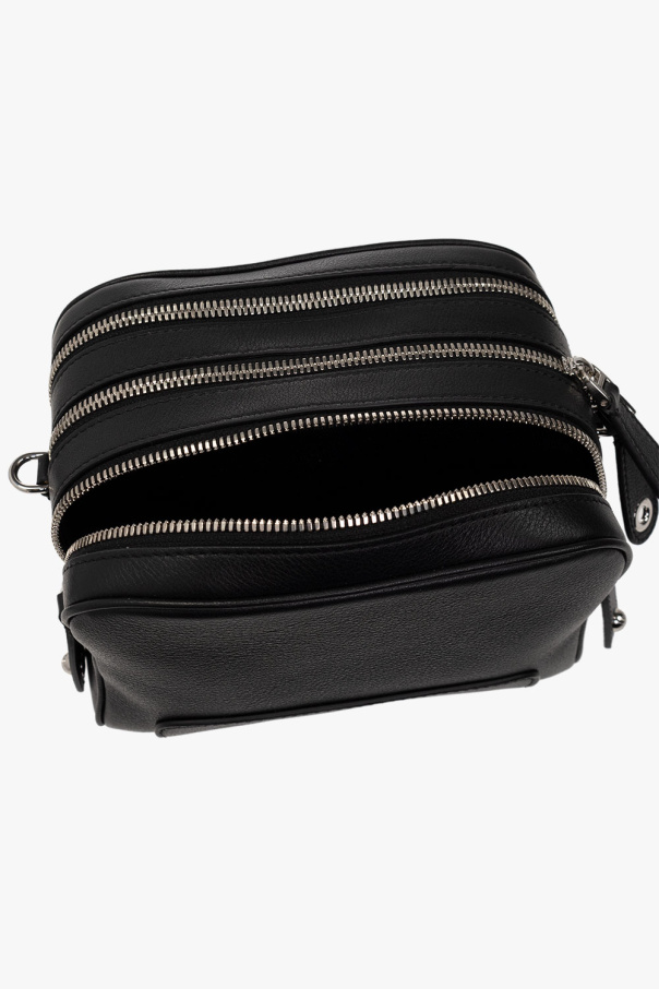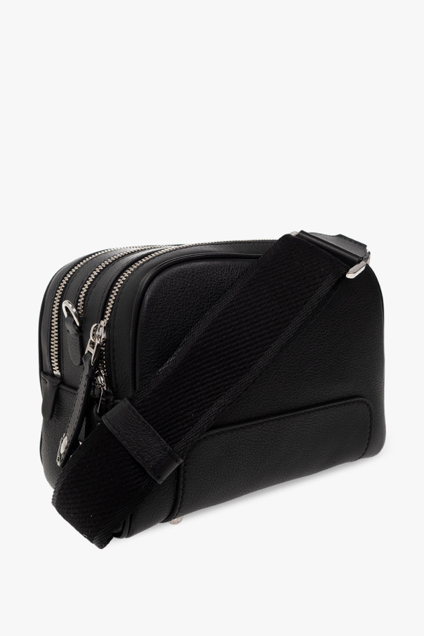Black shoulder bag from Dolce & Gabbana. Made of calf leather, this design secures with a zip and features a metal logo plaque on the side, a detachable nylon strap with a leather trim, silver-tone metal hardware and three internal compartments – one has one slip pocket, the other one zip pocket.