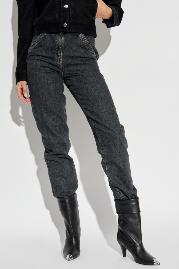 Embrace the timeless sophistication of the Blandine jeans from the esteemed house of Iro. Crafted with meticulous precision, these jeans epitomize refined elegance and modern charm. Designed with a regular fit that gracefully contours the body while ensuring exceptional comfort, the Blandine jeans feature a classic, straight leg that subtly tapers towards the hem. The deep, black denim exudes an aura of understated luxury, with contrasting light stitching that adds a touch of refined character. With a focus on functionality, these jeans are equipped with two front pockets and two back pockets, providing practical storage without compromising on style. The front closure includes a button and a zip fly, ensuring a secure fit. The non-stretch fabric, composed of a premium blend of cotton and hemp fibers, guarantees durability and a polished appearance. Why Choose This Product? Elegant regular fit with a tapered leg design Crafted from high-quality, non-stretch black denim Contrasting light stitching for added sophistication Functional pockets for practical use Secure button and zip fly closure Versatile for various occasions, from casual to chic