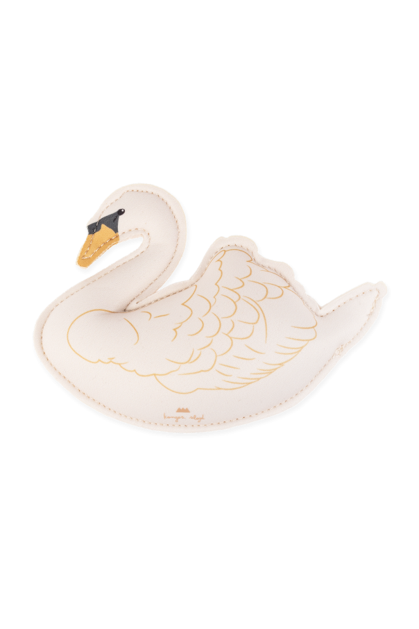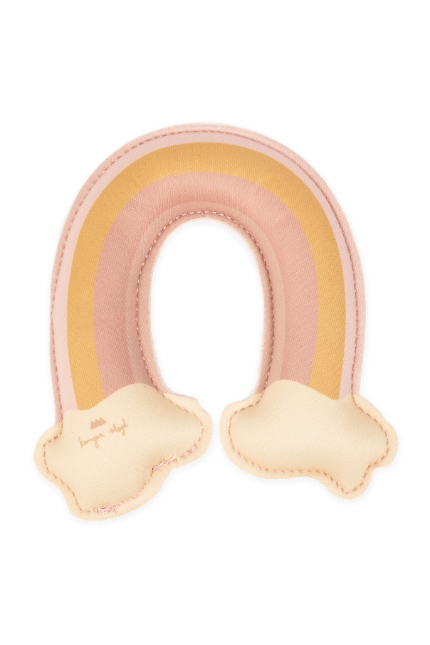 Introducing the enchanting Konges Sløjd Diving Toys, meticulously crafted to transform your child\'s water time into an adventure of imagination and whimsy. Fashioned with an eye for exquisite detail, these toys feature two swans and a rainbow, each adorned in soft, pastel hues that are sure to captivate and stimulate young minds. The swans boast a delicate pink body, with a deeper pink accentuating their feathered contours, and golden details highlighting their beaks and eyes, creating a regal appearance. The rainbow, with its three stripes of varying pink shades, is complemented by clouds on both ends, adding a touch of magic to this aquatic collection. These toys are devoid of any overt branding, allowing their fine craftsmanship to stand at the forefront. Constructed from 100% neoprene with a 100% sand filling, these diving toys are not only soft and safe for water play but are also designed to endure the rigors of water exposure, making them perfect companions for the pool or bath. Their design encourages play and swimming skills development, making each dip a delightful learning experience. Why Choose These Diving Toys? Exclusively designed by Konges Sløjd, known for their commitment to quality and imaginative play. Made with durable, water-resistant materials, ensuring long-lasting fun. Visually appealing with gentle pastel colors and meticulous attention to detail. Encourages aquatic play and helps in developing swimming skills. Free from prominent logos for a distraction-free, aesthetically pleasing experience.