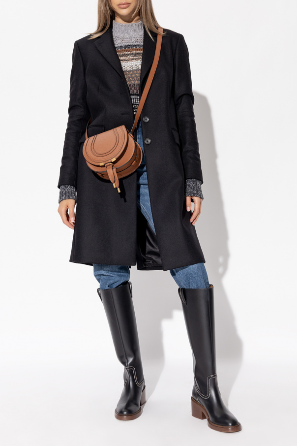 Black ‘Evening’ heeled boots from Chloé. Crafted from leather, this pair features decorative stitching and brown sole made of leather and rubber.