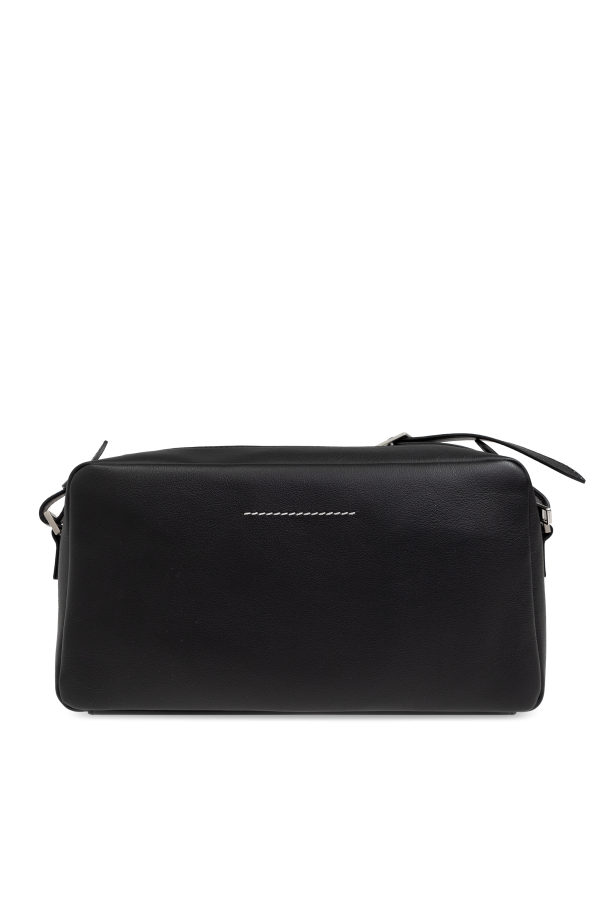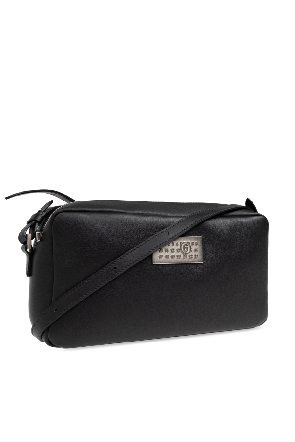 Introducing the 5AC Shoulder Bag, an exquisite piece from the MM6 Maison Margiela collection. This rectangular bag, featuring elegantly rounded corners, is meticulously crafted from smooth, high-quality black leather. The bag boasts a long, adjustable shoulder strap, which can be detached for versatile styling. Its unisex design makes it an impeccable choice for both men and women. A distinctive metal plaque on the front showcases the collection\'s signature numbering from 0 to 23, with the number \"6\" encircled. This plaque, along with the metal zipper pull, accentuates the bag\'s sophistication and superior craftsmanship. The interior of the bag, lined with premium cotton, is spacious, offering practicality for everyday use. An internal label with the collection\'s numeric code adds an additional touch of exclusivity. Entirely black, this bag exudes an elegant and timeless appeal, perfectly aligning with the avant-garde ethos of Maison Margiela. Why Buy This Product? High-Quality Materials: Made from smooth black leather and lined with soft cotton. Exclusive Design: Features the iconic collection numbering and designer\'s logo plaque. Versatile Usage: Adjustable and detachable shoulder strap for multiple styling options. Spacious Interior: Practical for daily use with ample space inside. Unisex Appeal: Suitable for both men and women.