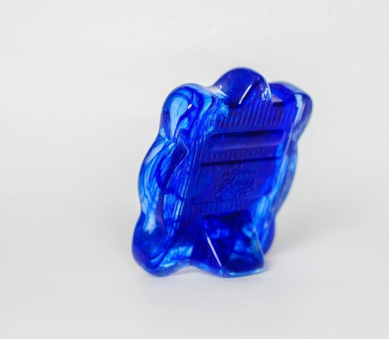 Серебряный оклад закреплен в муранском стекле синего цвета.Ценность муранского стекла состоит в особых секретах технологий его