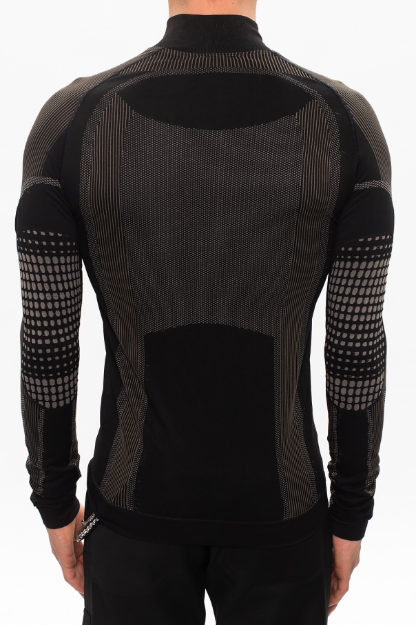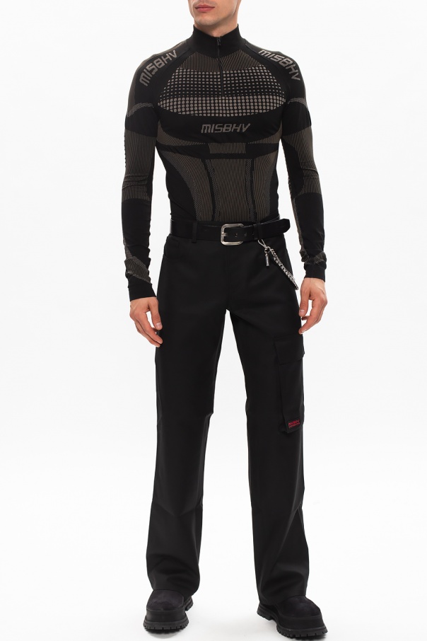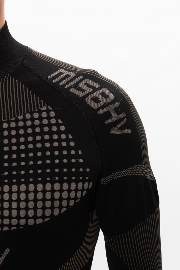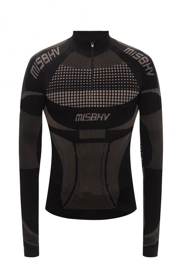 Black ‘Sport Active Classic’ performance T-shirt from MISBHV. Crafted from breathable thermo-active fabric. 60% of the yarn is recycled. This long-sleeved style features brown and green ribbed logo detail and elastic trims. This product was made in Poland with the use of 100% energy from solar panels, to reduce negative impact on our environment.