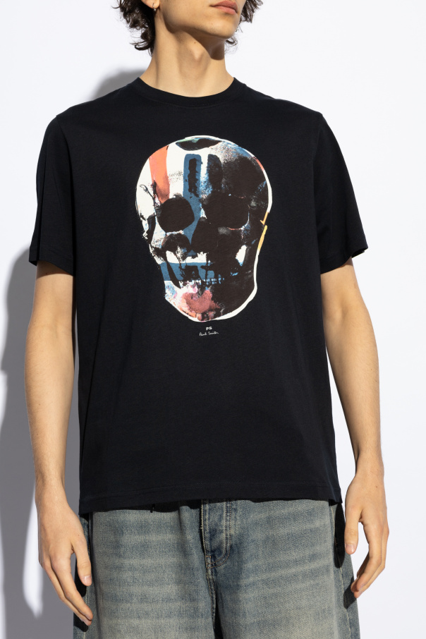 Introducing an exquisite piece from the PS Paul Smith collection, the Navy T-shirt with Abstract Skull Print. This garment is a testament to the harmonious blend of avant-garde artistry and casual elegance. Crafted from premium 100% cotton, this T-shirt promises both supreme comfort and breathability, ideal for the discerning individual seeking both style and substance. The T-shirt features a classic round neckline and short sleeves, embodying the timeless appeal of casual wear. However, what sets this piece apart is the vibrant, abstract skull print adorning the front— a kaleidoscope of white, blue, and red splashes that transform the garment into a canvas of artistic expression. Despite its boldness, the design maintains a sense of sophistication, further enhanced by the subtle branding near the neckline, a signature of PS Paul Smith\'s dedication to understated luxury. The rear of the T-shirt remains sleek and unadorned, offering a clean contrast to the intricate detail of the front. Meticulously constructed, with neatly executed seams and hemlines, this piece is a testament to high-quality craftsmanship. Why Purchase This Product? Exclusive Design: Stand out with the abstract, color-rich skull print—a bold statement of artistic fashion. Superior Quality: Crafted from 100% cotton, ensuring a soft, comfortable fit with excellent durability. Understated Branding: Elegantly incorporates the PS Paul Smith logo, symbolizing luxury without overshadowing the design. Versatile Elegance: Perfectly balances bold artistry with classic casual style, making it suitable for various occasions.